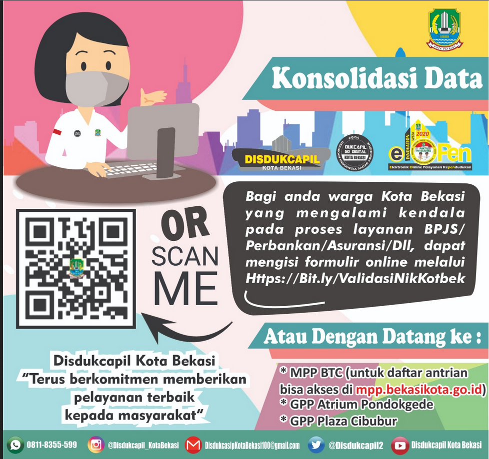 Kota Bekasi Disdukcapil Kota Bekasi meluncurkan fitur PO ASIH MAS DUKI dalam aplikasi e-Open sejak tahun 2025 untuk memudahkan warga Kota Bekasi mengajukan permohonan konsolidasi bersih data kependudukan. Layanan ini dapat diakses secara online melalui smartphone di mana saja dan kapan saja, sehingga proses pengurusan menjadi lebih cepat dan efisien.